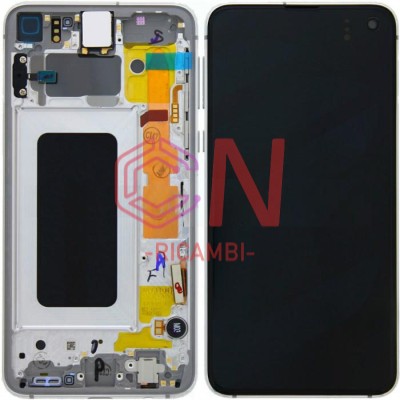 TOUCHSCREEN + DISPLAY LCD DISPLAY COMPLETO + FRAME PER SAMSUNG GALAXY S10E G970F BIANCO ORIGINALE (SERVICE PACK)