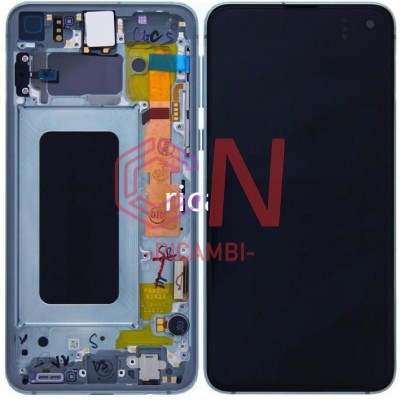 TOUCHSCREEN + DISPLAY LCD DISPLAY COMPLETO + FRAME PER SAMSUNG GALAXY S10E G970F VERDE PRISMA ORIGINALE (SERVICE PACK)
