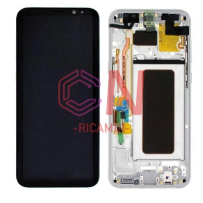 TOUCHSCREEN + DISPLAY LCD DISPLAY COMPLETO + FRAME PER SAMSUNG GALAXY S8 G950F ARGENTO ORIGINALE (SERVICE PACK)