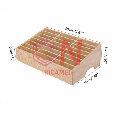 SCATOLA IN LEGNO 24 GRIGLIE DI IMMAGAZZINAGGIO 30cm*19cm*10cm PER TELEFONO DA TAVOLO CON SUPPORTO PER CELLULARE