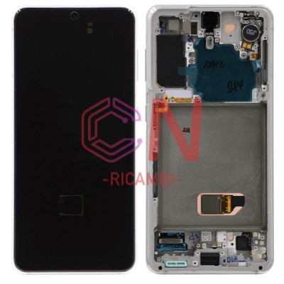 DISPLAY LCD + TOUCHSCREEN DISPLAY COMPLETO + FRAME PER SAMSUNG GALAXY S21 5G G991B FANTASMA BIANCO ORIGINALE (SERVICE PACK)