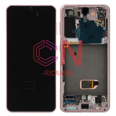 DISPLAY LCD + TOUCHSCREEN DISPLAY COMPLETO + FRAME PER SAMSUNG GALAXY S21 5G G991B FANTASMA ROSA ORIGINALE (SERVICE PACK)